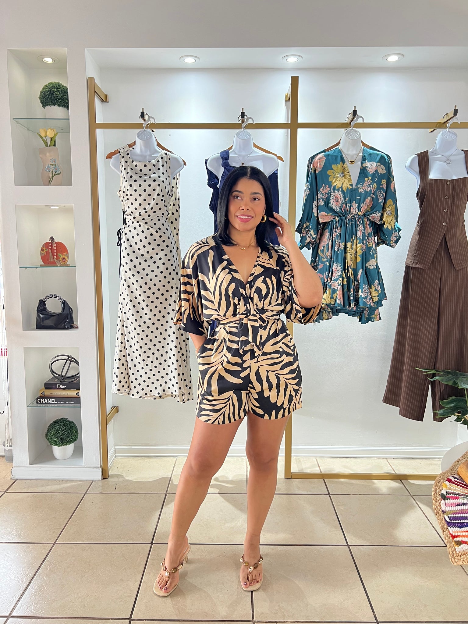 Kimono sleeves tie front chest elastic back waisted romper, have pockets, satin look fabric