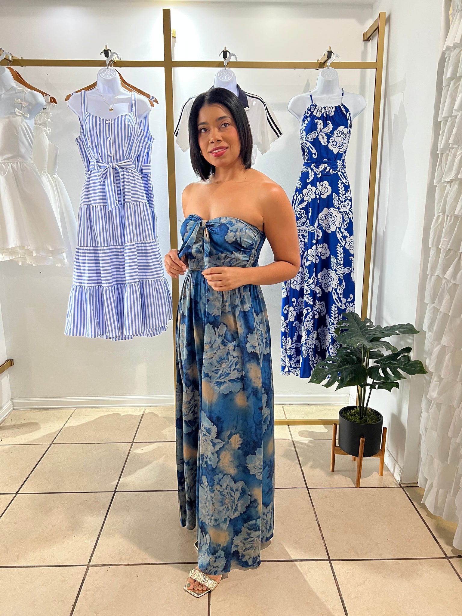 Tube smocked back top tie front chest jumpsuit, elactic waist