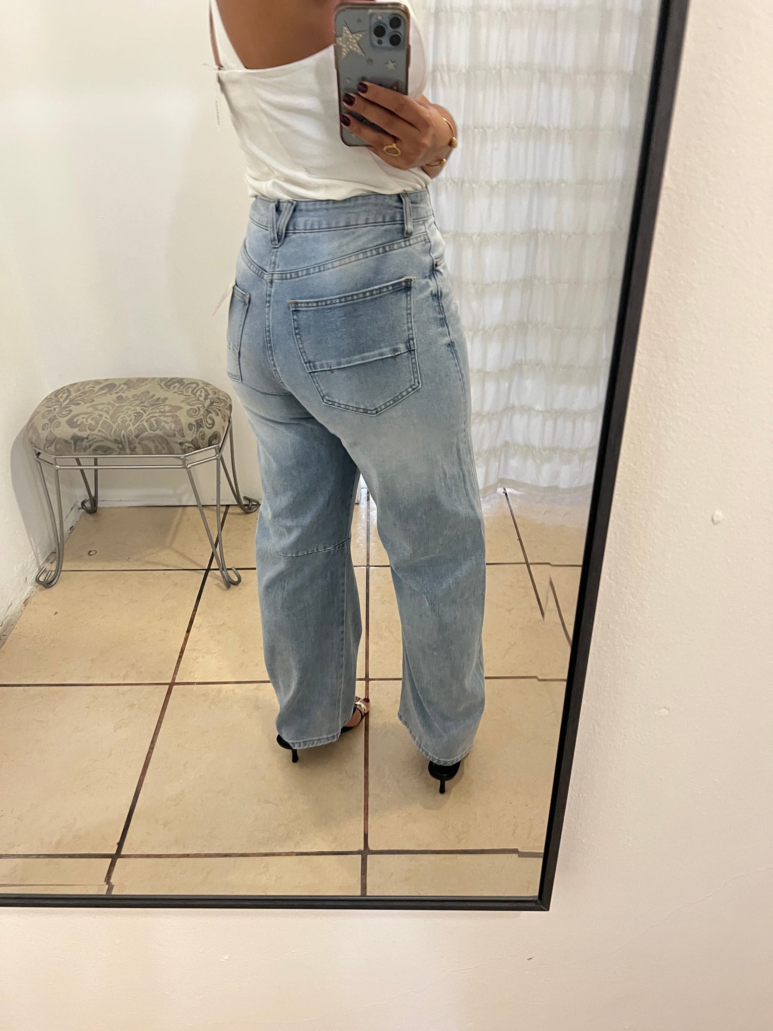 Baggy barrel featuring 5-pocket construction and zip-fly clousure. Rise: 12.5”, inseam 30” Model is 5’4 and wearing a size 5