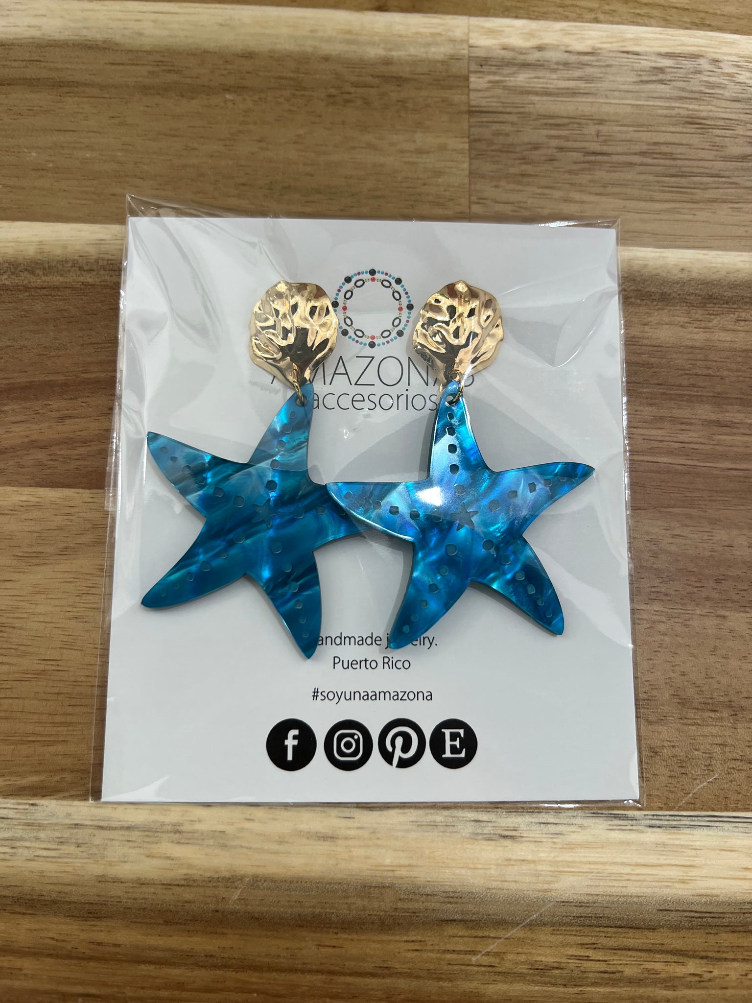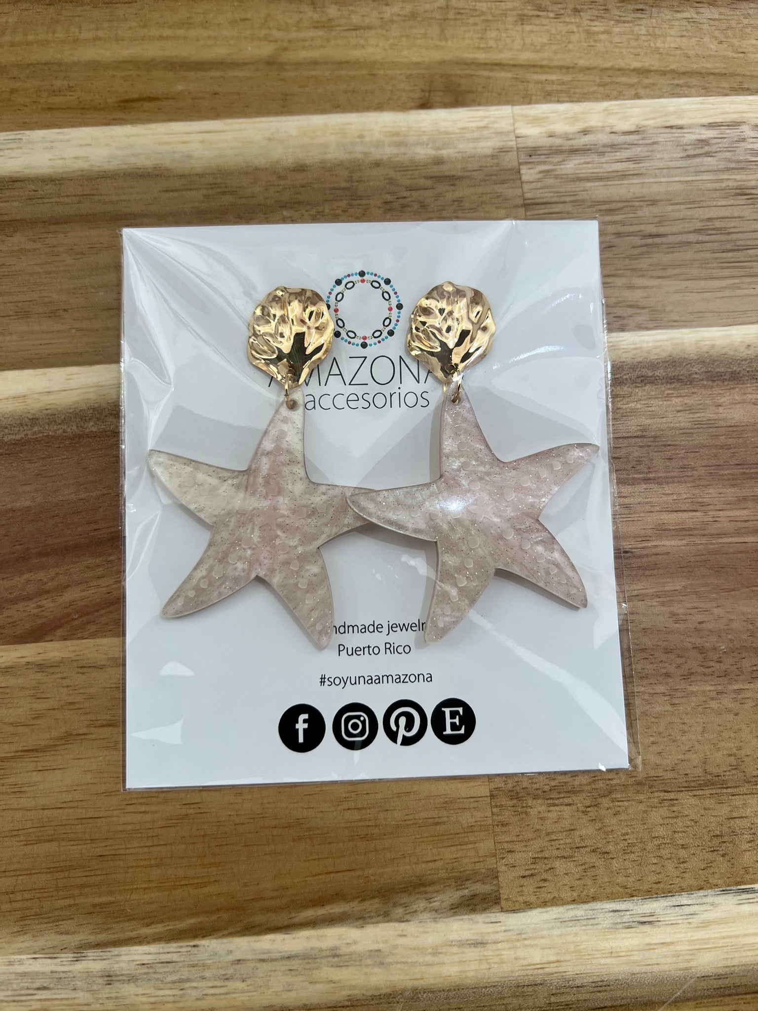 Par ganchos, pendant Estrella de Mar en color crema y turquesa